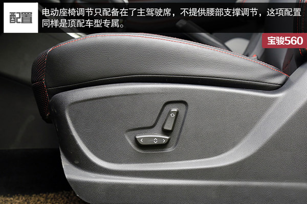 方向盤只能實現上下調節,是大多這一級別車型共同之處,寶駿560也不例外,如果想找到相對舒服的坐姿,就必須調節腿部姿勢以適應方向盤。試駕車輛座椅為皮革材質,用以裝飾的紅線看上去很運動,但其實座椅很柔軟,更偏重于舒適,其電動座椅不可調節腰部支撐,即便如此這項配置也是高配車型獨享。