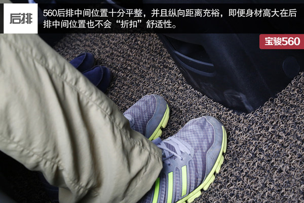 560后排具備很多看點,首先后排空間通過下圖展示便無需再多解釋,完全是越級表現。無論中間座椅頭枕、中央扶手、兒童安全座椅接口以及出風口都可以在后排找到,它甚至貼心地提供了USB接口為電子設備充電。此外560后排中間位置十分平整,并且縱向距離充裕,即便身材高大在后排中間位置也不會“折扣”舒適性。