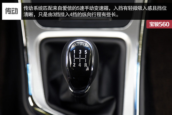 目前寶駿560未能提供自動擋車型,不過好消息是其手擋車型十分容易駕馭,無論離合踏板、油門踏板力度都很輕盈,即便剛從駕校畢業的新手也能只應用離合踏板順利起步,瀕臨熄火時電腦能夠自動補油。離合結合點正好處于中間位置,且踏板整體行程不長,到了結合點會有明顯感覺。