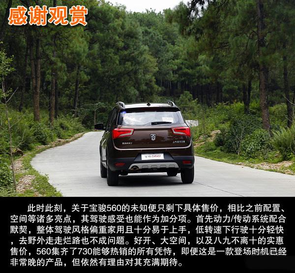 全文總結:此時此刻,關于寶駿560的未知便只剩下具體售價,相比之前配置、空間等諸多亮點,其駕駛感受也能作為加分項。首先動力/傳動系統配合默契,整體駕駛風格偏重家用且十分易于上手,低轉速下行駛十分輕快,去野外走走爛路也不成問題。好開、大空間,以及八九不離十的實惠售價,560集齊了730能夠熱銷的所有憑恃,即便這是一款登場時機已經非常晚的產品,但依然有理由對其充滿期待。