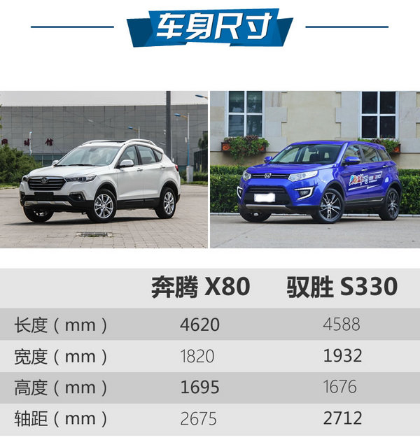 對比的兩款車型是高配車型,從市場價格來看,兩款車雖然相差不多,但馭勝S330要比X80多了一套四驅系統,不帶四驅系統的版本要比對手便宜一萬多,并且配置還要高,單奔騰X80的品質確實要更好一些,綜合來說,確實勢均力敵,這個決定真的要靠眼緣了。