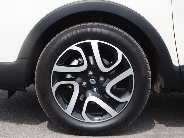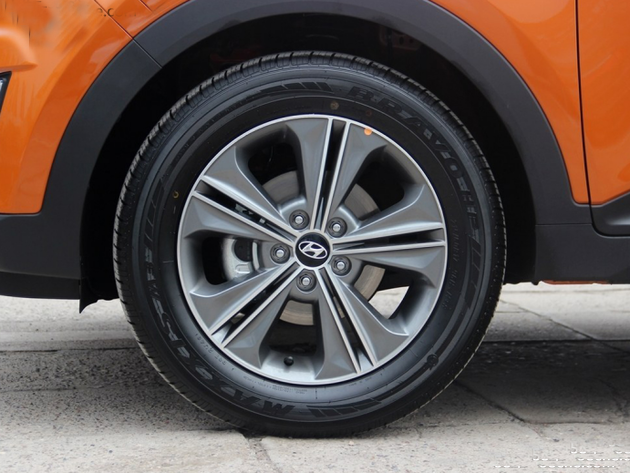 ix25的輪胎尺寸為215/60 R17,五輻的輪圈造型采用了銀灰雙配色。卡繽的輪胎尺寸為205/55 R17,寬度雖然略小于對手,但更低的扁平比在操控方面優勢更大。