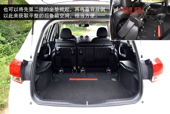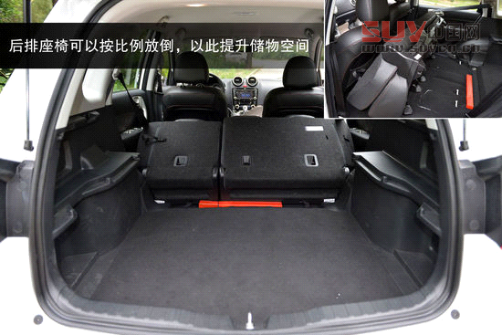 后備箱儲物多元化的空間使得它變得很實用,常規的容積可以達到808L,第二排座椅放倒后可以達到2010L的容積,如果你覺得座椅放倒后的后備箱不夠平整的話,那你可以將第二排的坐墊掀起,再將靠背放倒以此來獲取平整的后備箱空間,相當方便。