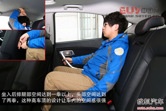 空間方面,得益于2675mm的軸距,其后排空間表現很不錯,并且與前排座椅相比,后排真皮座椅的填充物質地較軟,乘坐起來很舒適。坐入后排腿部空間達到一拳以上,頭部空間達到了兩拳,這種高車頂的設計讓車內的空間感很強。