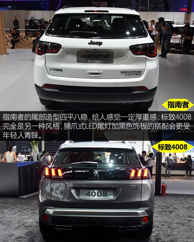 【SUV中國網(wǎng)】今年的合資緊湊型SUV市場又添兩款重磅車型,一款是剛上市的東風(fēng)標(biāo)致4008,另一款則是在廣州車展亮相的廣汽菲克Jeep指南者。為什么會把它們放在一起PK呢?首先,它們作為新車具有較高關(guān)注度;其次,指南者在公布預(yù)售價后(17萬-24萬),我們發(fā)現(xiàn)這兩款車型的價格區(qū)間有部分交集,因此存在一定競爭關(guān)系。與此同時,我們也知道指南者和標(biāo)致4008在這個細(xì)分市場里都算是比較個性的存在,相信同時關(guān)注這兩款車型的朋友也不在少數(shù)。所以,在雙方尚未正式交鋒時(指南者還沒上市),我們不妨先初步了來檢驗一下它們的實力。(注:由于指南者尚未上市,所以此次在配置方面不進(jìn)行詳細(xì)對比,重點放在設(shè)計、乘坐空間和儲物空間等硬性指標(biāo)上。)