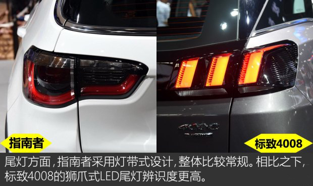 指南者的尾部設(shè)計確實比較常規(guī),不妨試想一下,如果換一種風(fēng)格也未必合適它,就這樣吧,低調(diào)不張揚也挺好。標(biāo)致4008的車尾造型跟308有相似設(shè)計,但整體要更前衛(wèi)大膽,辨識度非常高。