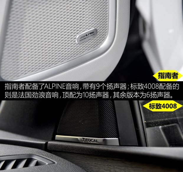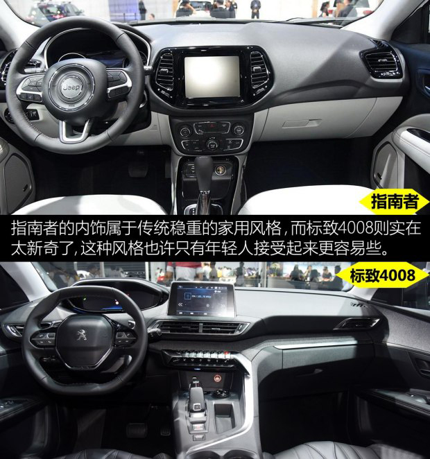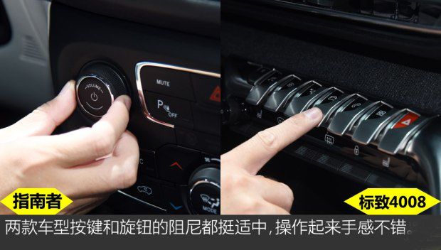 兩款車型的中控設(shè)計和外觀的風(fēng)格都比較接近,指南者依然展示了自己穩(wěn)重的一面,而標(biāo)致4008則充滿未來感,這大概符合年輕消費者的心理,有個性就行了。至于細(xì)節(jié)做工以及用料方面,指南者和標(biāo)致4008都表現(xiàn)出這個級別該有的水準(zhǔn),沒有什么可挑剔的地方。