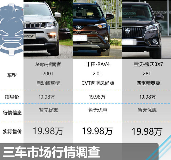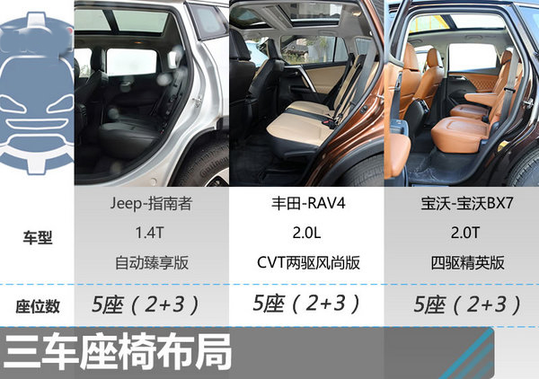 三款車型的價(jià)格完全一致,所以外界的客觀因素也基本可以排除,通過表格不難看出三款車型的面向?qū)用孢€是有所差距的。指南者與RAV4一樣,都是為了能夠擁有更高質(zhì)量的車生活以至于設(shè)計(jì)了非常多增加舒適度的配置,想必印象一定不會太壞;反觀寶沃BX7則是更注重車內(nèi)的體驗(yàn),讓車生活充滿了青春、活潑的軌跡。