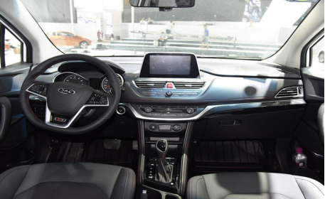 瑞風S3的內飾采用了較多運動元素,中控臺大面積配以皮革材質包裹,同時帶有紅色縫線以及少量的仿碳纖維裝飾。三幅式平底方向盤同樣增強了車內的運動風格。