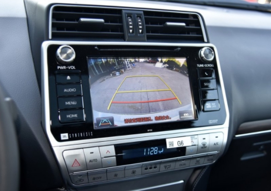2018款普拉多駕駛視野也比較高,內飾除儀表盤外,還有一個8英寸的中控顯示屏,最低配和次低配車型沒有倒車影像功能,需要后裝,高配版有PVM全景監控系統。視認性方面可以說高配版還是不錯的。