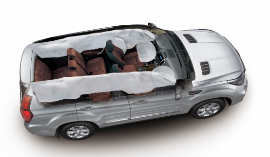 最后值得一提的還有潰縮式吸能管柱和多方位安全氣囊。當車輛發生正面碰撞時,潰縮式吸能轉向管柱通過形變來吸收能量,能夠降低方向盤對駕駛員胸部造成嚴重傷害的可能。而新哈弗H9全系標配的由雙安全氣囊、前排側氣囊、前后一體式側氣簾組成的多方位安全氣囊的保護面積更寬泛,在發生碰撞時也能更有效地保護車內乘員安危。