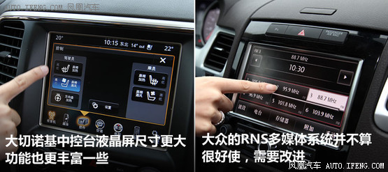 全新大切諾基內飾設計將古典和時尚融合,中控臺上的大尺寸液晶屏和全數字液晶儀表都是很新潮的東西,但整體風格依然給人傳統美國車的味道,有些地方需要人適應。途銳則從實用角度出發,家族風格的內飾讓人更容易上手,這也是它為什么叫大眾的原因。