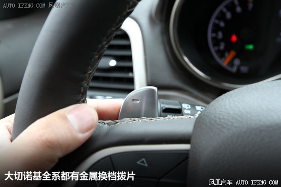 方向盤外徑兩車基本相當,而且也都采用了三輻式的造型,但大切諾基的輪緣要明顯比途銳更粗,一方面可以給人帶來更飽滿的握持感,但另一方面也讓很多手并不大的消費者難以完全握住。在人機工程學方面,途銳要顯得更成熟一些,方向盤握起來感覺更舒服。大切諾基全系都有金屬風格的換擋撥片,而這是對手所沒有的。