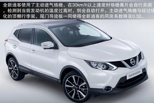 動力方面,全新逍客將搭配四款發動機:一款1.2升DIG-T直列四缸渦輪增壓發動機,最大功率115馬力(85千瓦),最大扭矩190牛米,CO2排放量為129g/km,這款發動機將會取代現款逍客所使用的1.6升自然進氣發動機。另外一款汽油機為1.6升DIG-T直列四缸渦輪增壓機,最大功率150馬力(110千瓦),最大扭矩240牛米,CO2排放量為132g/km。兩款柴油機分別為1.5 dCi和1.6dCi渦輪增壓高壓共軌發動機。