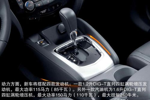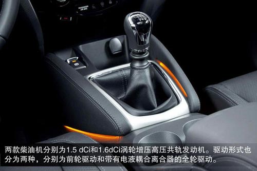 變速器由兩個選擇,分別為Xtronic CVT變速器和6前速手動變速器,其中Xtronic CVT變速器可以模擬7個前進速比。驅動形式也分為兩種,分別為前輪驅動和帶有電液耦合離合器的全輪驅動。全新逍客將會在2014年年初正式在歐洲市場銷售,由于相關配套發動機尚未在中國投產,以及CMF平臺需要引入國內生產商,因此全新逍客的國產化將要晚于這個時間。