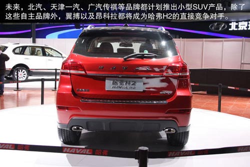 哈弗H2定位于以時尚風格為主的城市小型SUV,哈弗品牌獨立后,M系列產品歸入長城品牌旗下,哈弗旗下的入門級車型一直處于空缺狀態,而即將上市的哈弗H2將進一步拉低該品牌旗下車型的入門價格。未來,北汽、天津一汽、廣汽傳祺等品牌都計劃推出小型SUV產品,除了這些自主品牌外,福特翼搏以及別克昂科拉都將成為哈弗H2的直接競爭對手。