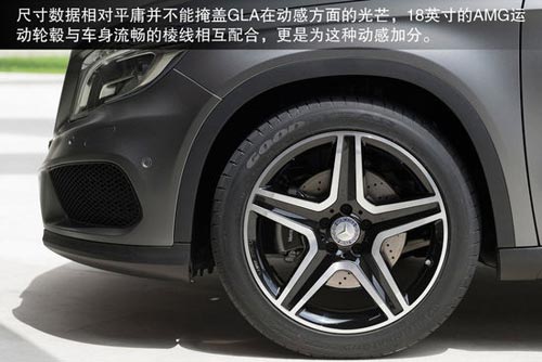 尺寸數據相對平庸并不能掩蓋GLA在動感方面的光芒,18英寸的AMG運動輪轂與車身流暢的棱線相互配合,更是為這種動感加分。相比車頭,GLA尾部的設計更能體現SUV韻味,得益于位置較高的尾燈,GLA的尾部看上去更顯高挑也更加霸氣;其后包圍大面積采用了黑色高光加網狀造型,再配以雙邊雙出的排氣設計,動感外形下的極強運動氣質呼展露無遺。