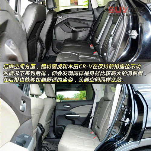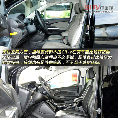 前排空間方面,福特翼虎和本田CR-V在調(diào)節(jié)至比較舒適的坐姿之后,橫向和縱向空間自不必多說,即使身材比較高大的駕駛者,頭部也有足夠的空間,而不至于感覺壓抑。