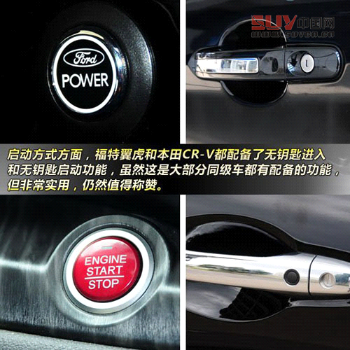 啟動(dòng)方式方面,福特翼虎和本田CR-V都配備了無鑰匙進(jìn)入和無鑰匙啟動(dòng)功能,雖然這是大部分同級(jí)車都有配備的功能,但非常實(shí)用,仍然值得稱贊。
