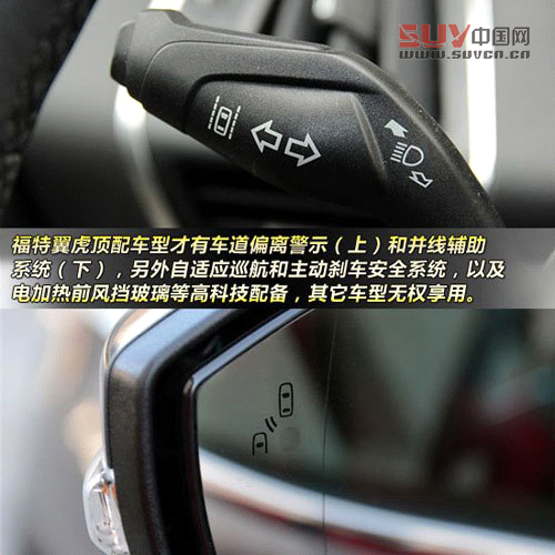另外不得不提到的是一些高科技配置,福特翼虎雖然在我們選擇的這款運(yùn)動(dòng)型車上沒有配備,但在更高一級(jí)的頂配車型上,還配備了自適應(yīng)式巡航,和因此帶來的主動(dòng)剎車安全系統(tǒng),另外車道偏離警示和并線輔助系統(tǒng),也都是對(duì)行車安全頗有裨益的功能,還有電加熱前風(fēng)擋,對(duì)北方下雪地區(qū)的車主來說尤為實(shí)用。當(dāng)然,我們還是希望這些高科技配置不要僅僅放在頂配車上,不能夠讓全系多款車都受益的配置,消費(fèi)者會(huì)習(xí)慣性想到那是用來宣傳的,而不是真正想給人用的。