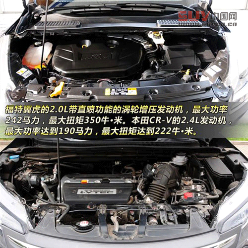 福特翼虎的發(fā)動(dòng)機(jī)采用的是2.0L帶直噴功能的渦輪增壓發(fā)動(dòng)機(jī),最大功率242馬力,最大扭矩350牛·米,而且只需要使用93#汽油(京92#),參數(shù)方面可謂非常亮眼。本田CR-V的發(fā)動(dòng)機(jī)采用的是2.4L自然吸氣發(fā)動(dòng)機(jī),在i-VTEC功能的幫助下,最大功率達(dá)到190馬力,最大扭矩達(dá)到222牛·米,同樣使用93#汽油(京92#),這樣的參數(shù)作為2.4L自然吸氣發(fā)動(dòng)機(jī)同樣非常出色。