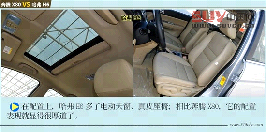 在動力上,哈弗H6表現(xiàn)的更優(yōu)秀,動力輸出也更強(qiáng),這些硬件條件對于消費者來說,都要比奔騰X80具有更高的吸引力。