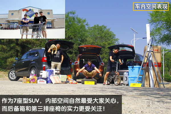 簡單認識、了解完本次評價過程的六位主角,接下來就要向大家逐一介紹評價過程中的具體環節和規則簡要了。我們將此次評價過程以模擬7座SUV及車主們周末一天生活的方式來作為主線,首先空間體驗評價部分將會作為第一部分帶給大家,在該部分內容中大家會看到三款車的后備箱裝載能力,以及體驗者對于第三排乘坐空間的親身體驗。