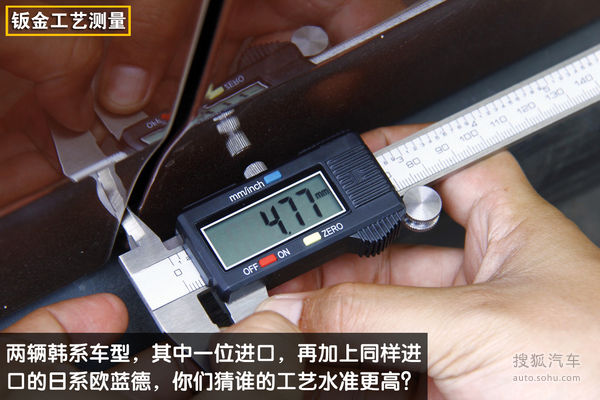 而在鈑金制造工藝及拼裝水準方面,我們還是采用了相對比較專業的方式進行精準測量,分別對三款車的重要接縫處進行了對比測量,這其中包括同一輛車的左右對稱式測量,以及不同車型之間的對比測量,最終哪輛車上下的功夫更多相信大家能夠一目了然。
