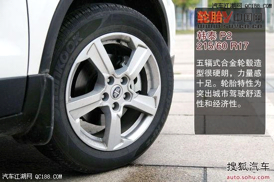 輪胎采用了韓泰215/60 R17 Dynapro HP2型號,突出城市駕駛舒適性和經濟性。值得肯定的,備胎采用了全尺寸輪胎,很厚道。與以上幾個對手相比,輪胎直徑不錯,但胎寬方面偏窄。