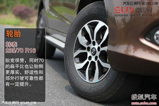 輪胎方面,比亞迪S6標配了225/65 R17尺寸的輪胎,偏重城市路況,胎寬方面在這幾款車中處于中等水平。