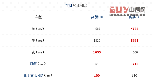 小結:雖然兩車都屬于城市SUV車型,但他們的懸架調校還是略微不同的,奔騰X80的懸架調校得偏向舒適,傳祺GS5的懸架調校的偏運動。但兩車憑借著較高的離地間隙和不錯的視野,在城市或鄉間中穿行綽綽有余。在動力表現上,兩款車均使用的2.0L發動機,它們之間的最大功率相同;但在經濟燃油性方面奔騰X80要優于傳祺GS5。