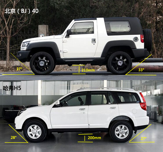 出去撒野,不僅要馬力夠大,還要底盤夠高,方能去別人不能去的地方,看別人看不到的風景。在通過性方面,北京(BJ)40和哈弗H5孰強孰弱呢?