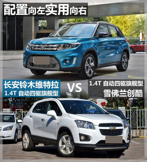 長安鈴木維特拉于今年11月新鮮上市,提供1.6L(手動兩驅進取型/最低配)以及五款搭載1.4T發動機在內的共計六款車型可選,售價在9.98萬至15.98萬之間。此次我們選擇的對比車型是售價為15.98萬的長安鈴木維特拉 2016款 1.4T 自動四驅旗艦型(以下簡稱維特拉)與售價為14.99萬的雪佛蘭創酷 2016款 1.4T 自動四驅旗艦型(以下簡稱創酷)。由于維特拉新近上市,目前終端門店暫無優惠,而創酷的1.4T 自動四驅旗艦型在北上廣深以及天津、成都、江蘇等全國主要城市都有幅度不小的優惠,使得消費者難以取舍。
