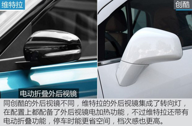 外后視鏡電動折疊以及無鑰匙進入和一鍵啟動功能在維特拉豪華型以及以上車型均有配備,因此本次參與對比的維特拉比創酷多了這兩樣配置。從舒適性和便利性方面來看,會比創酷好上一些。