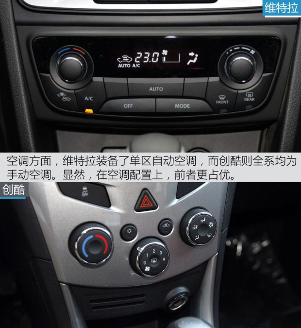 創酷目前配備的還是手動空調,在現在看來,旗艦版車型配以這樣的配置有些說不過去。所以相比起來,維特拉上的單溫區自動空調在舒適性上會更高一些。