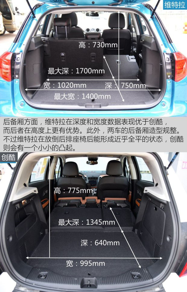 ● 空間:維特拉后備廂更大/創酷車內空間更充分