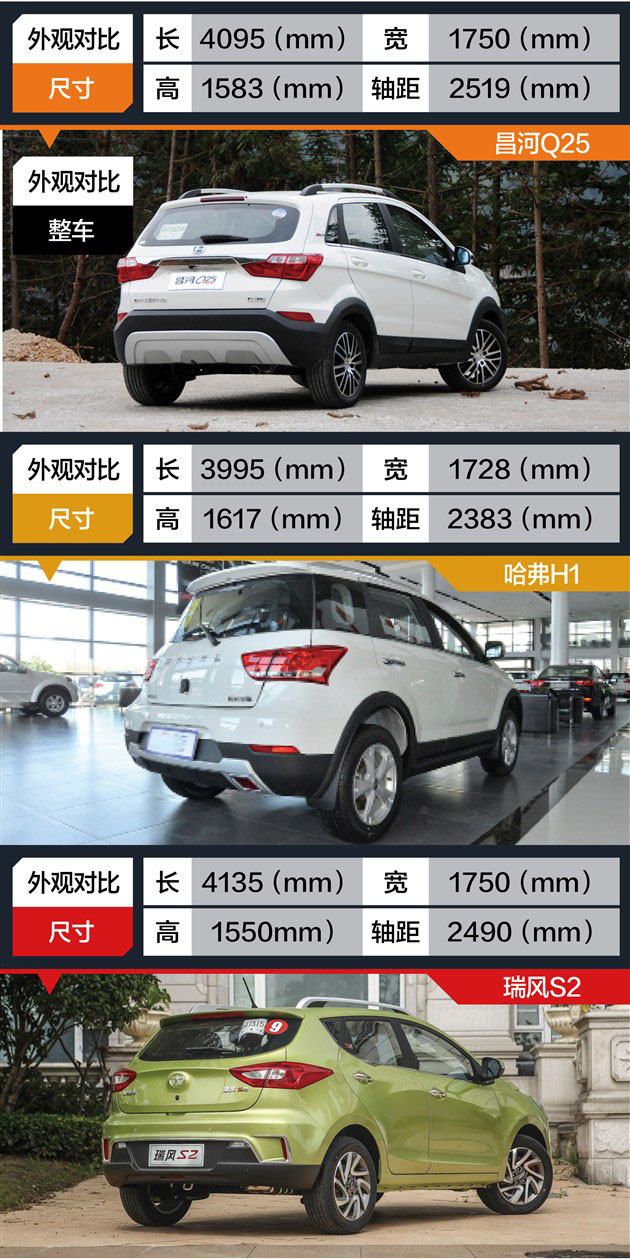 | 車型 | 昌河Q25 | 紅標哈弗H1 | 瑞風S2 |