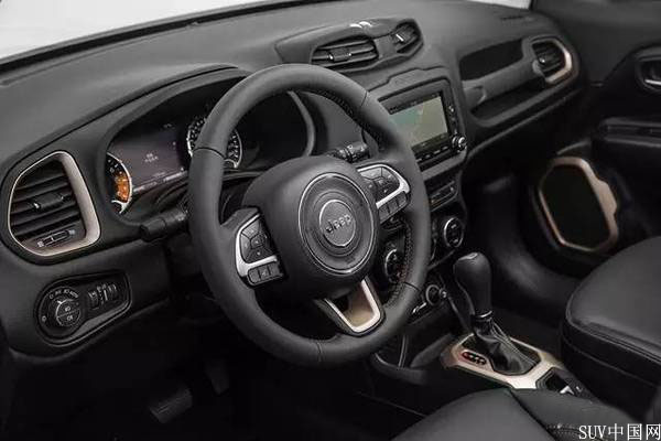 自由俠在內飾的設計上同樣采用了年輕活力的設計風格,其中控臺上的各功能分區相對獨立,中控臺及門板采用了多處的軟性材質包裹,整體用料及質感較為不錯。而該車所裝配的三輻式方向盤也是Jeep車型一貫的造型風格。