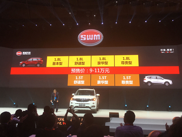 【SUV中國網(wǎng)】華晨鑫源旗下的全新乘用車品牌——斯威汽車(7月27日)在751D·PARK北京時尚設計廣場正式發(fā)布。在本次的發(fā)布會中,斯威官方發(fā)布了品牌LOGO和旗下首款SUV產(chǎn)品斯威X7的預售價,預售價格為9-11萬元,詳情請見下表: