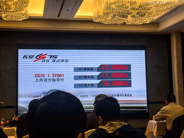 【SUV中國網】2016年10月12日,長安CS 75 1.5T車型正式上市,新車共計推出3款車型,官方指導售價區間為10.58-12.38萬元。新車在外觀和內飾上將延續現款車型的造型,詳細售價區間見下表: