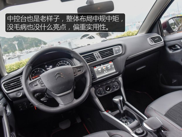 內(nèi)飾同樣沒(méi)有發(fā)生改變,中控臺(tái)造型中規(guī)中矩,中控面板微微傾向駕駛者,新車的擋桿以及手剎拉桿采用風(fēng)格相似的設(shè)計(jì),類似于飛機(jī)操縱桿的樣式很能吸引眼球。根據(jù)車型的不同,新車配備有Citroen connect互聯(lián)系統(tǒng)、無(wú)鑰匙進(jìn)入/一鍵啟動(dòng)、車身穩(wěn)定系統(tǒng)、坡道輔助、全景泊車、全景天窗、DCS動(dòng)態(tài)舒適底盤系統(tǒng)以及Grip Control智能多路況適應(yīng)系統(tǒng)等。