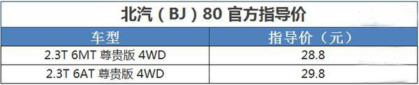 在2016北京車展前夕,在探館的過程中發現了北京汽車的全新車型BJ80。BJ80這款SUV車型因造型接近奔馳G級而被廣泛關注,可以說是今年最被關注的車型之一。該車在4月23日正式上市,提供兩款車型,詳見下表: