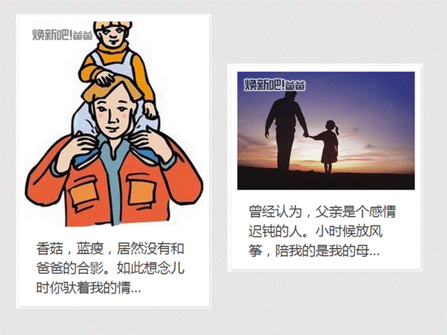 只不過,身處不同時代,我們兩代人在對愛的表達上有著明顯的不同。在80、90后的子女眼里,父愛大多不再如山那般沉重,因為年輕爸爸們把這份愛表現得更直接、更直白。