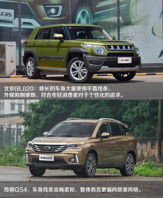 現如今,80后業已成熟,90后也逐漸走出象牙塔,步入社會,這些都市的型男素女正成為車市中最具活力,也最不可忽視的一股力量。對于這個全新崛起的年輕消費群體而言,SUV因為兼顧城市通勤和戶外出游兩大功能而備受青睞,尤其是A級SUV,既有SUV車型的特點,在價格方面也具備相對優勢,已經成為他們購車的新趨勢。但是,在當前市場上A級SUV車型眾多,龍魚混雜,到底哪一款能讓這些年輕消費者心動,并真正承擔得起他們的實際需求呢?今天,小編特意選取了兩款頗具實力、市場關注度較高的買車必看車型——北京(BJ)20和傳祺GS4,看顏值、比配置、拼實力,看看誰才是大家心目中的最佳選擇。