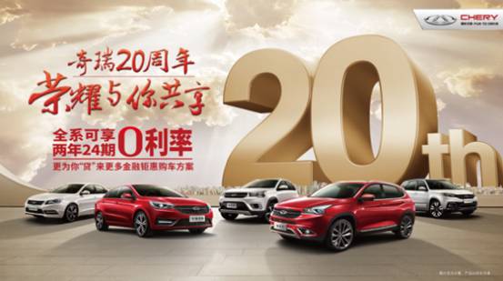 奇瑞20周年,榮耀與您共享。盛夏八月,奇瑞為敢于夢想的你量身定制多重靈活金融鉅惠購車方案,邀你輕裝啟程。