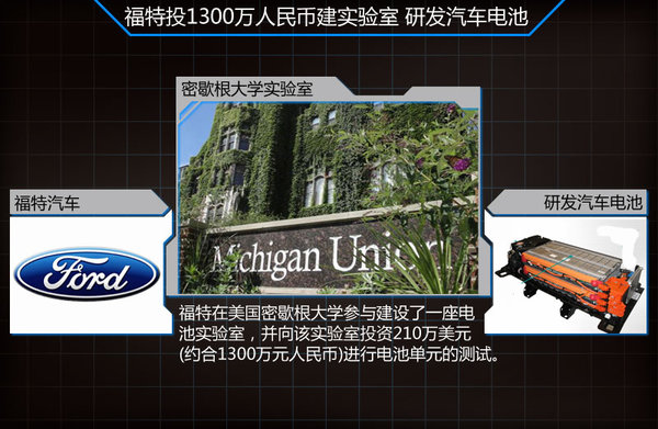 SUV中國網報道 在豐田、大眾和通用等眾多車企開始發展車型電氣化的同時,福特汽車也已開始在電動車領域發力。日前,福特在美國密歇根大學參與建設了一座電池實驗室,并向該實驗室投資1300萬元人民幣(約合210萬美元)用以進行電池單元的測試。對此,福特官方表示:正處于建設的電池實驗室將于明年秋季落成。