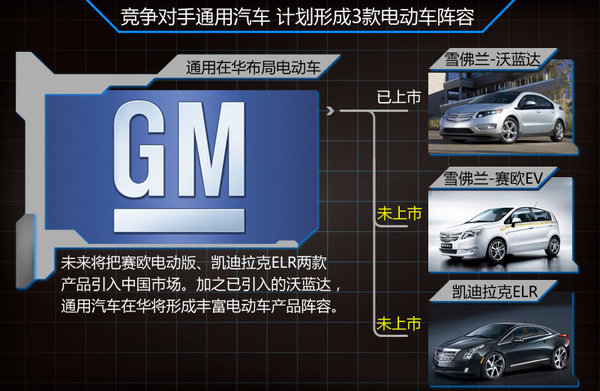 相比福特電氣化車型的發展,通用汽車發展進度更加迅猛,同時注重中國市場的需求。未來數年通用汽車計劃大力推廣車輛電氣化,此前,通用汽車(中國)高管曾向網通社透露,未來將把賽歐電動版、凱迪拉克ELR兩款產品引入中國市場。加之已經引入的沃藍達,通用汽車在華將形成豐富電動車產品陣容。