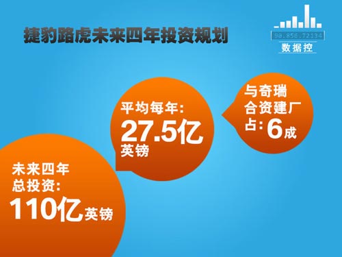 在今年前11個(gè)月,捷豹路虎在華共銷售83,499輛新車,同比增長28.2%,仍然是捷豹路虎銷量最高的單一市場。對此捷豹路虎全球首席執(zhí)行官施韋德博士曾表示:“在2012年,中國的銷量就已經(jīng)超過美國,成為捷豹路虎全球第一大市場。對于我們捷豹路虎來說,中國市場未來有巨大的發(fā)展空間和潛力,我們對中國的發(fā)展充滿信心。”并且本月施韋德和捷豹路虎中國總裁高博先生在北京簽署價(jià)值45億英鎊的新財(cái)年購車備忘錄,已約占捷豹路虎上一財(cái)年全球銷售額的三分之一。而根據(jù)未來幾年該集團(tuán)的相關(guān)投資規(guī)劃,其將投入110億英鎊(約1000億人民幣),其中最為主要的便是奇瑞捷豹路虎合資公司,約10.9億英鎊。
