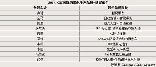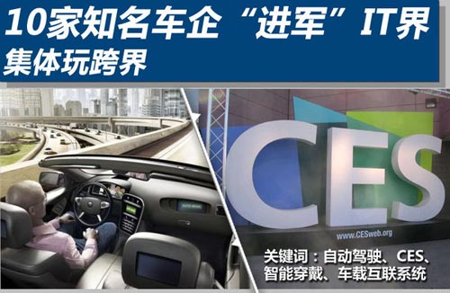近些年在谷歌、蘋果等IT企業(yè)相繼涉足汽車領(lǐng)域后,全球眾多知名車企也開始與IT企業(yè)攜手在車聯(lián)網(wǎng)以及無(wú)人駕駛等多個(gè)領(lǐng)域展開合作。在全球最為知名、影響力最大的CES國(guó)際消費(fèi)電子產(chǎn)品展上,我們會(huì)發(fā)現(xiàn)不在單單只有IT企業(yè)的身影,由于車企前來(lái)參展,掀起了一輪IT“跨界”風(fēng)潮。據(jù)記者統(tǒng)計(jì)后發(fā)現(xiàn),2014年全球共有10家知名車企加入CES的參展行列,其中為涉及奔馳、寶馬以及奧迪牌等豪華品牌。
