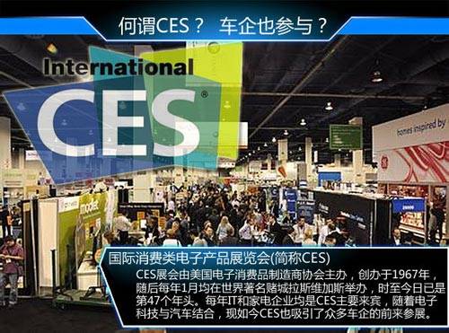 CES全名為International Consumer Electronics Show,是由美國(guó)電子消費(fèi)品制造商協(xié)會(huì)主辦,自1967年起,在美國(guó)的知名賭城拉斯維加斯,每年1月都會(huì)在那里舉辦世界上規(guī)模最大、影響力最廣的消費(fèi)類電子產(chǎn)品展。時(shí)至今日已是第47個(gè)年頭。每年IT和家電企業(yè)均是CES的主要來(lái)賓,隨著電子科技與汽車結(jié)合,現(xiàn)如今CES也吸引了眾多車企的前來(lái)參展。